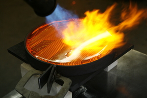 . That got way too complicated and then the tree grate idea reemerged and I decided that we could have a tree grate entrance pad and commission an artist to make a "cornerstone" of sorts to fill the circle where the tree would normally go. While taking a class at Penland this past fall I worked with one of our instructors, Pablo Soto , to make a test glass casting.