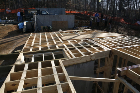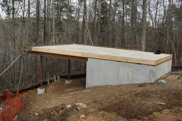 Framing started late last week and by today they had mostly completed the floor framing for the guest pod and a good chunk of the main pod.